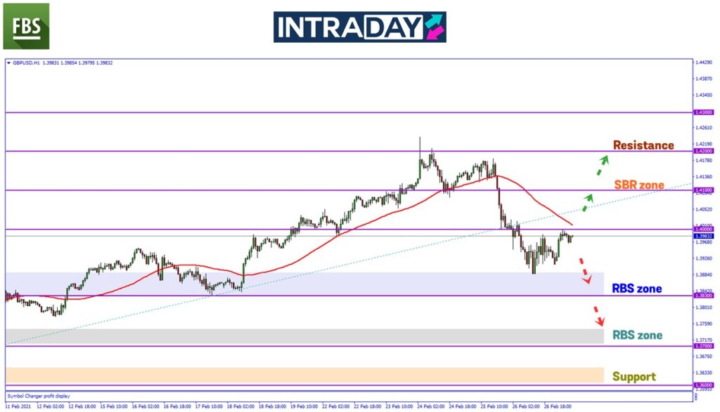 Penurunan harga pada Jumaat lalu menuju semula ke zon RBS (resistance become support) pada paras terendah mingguan dicecah sekitar 1.38900.