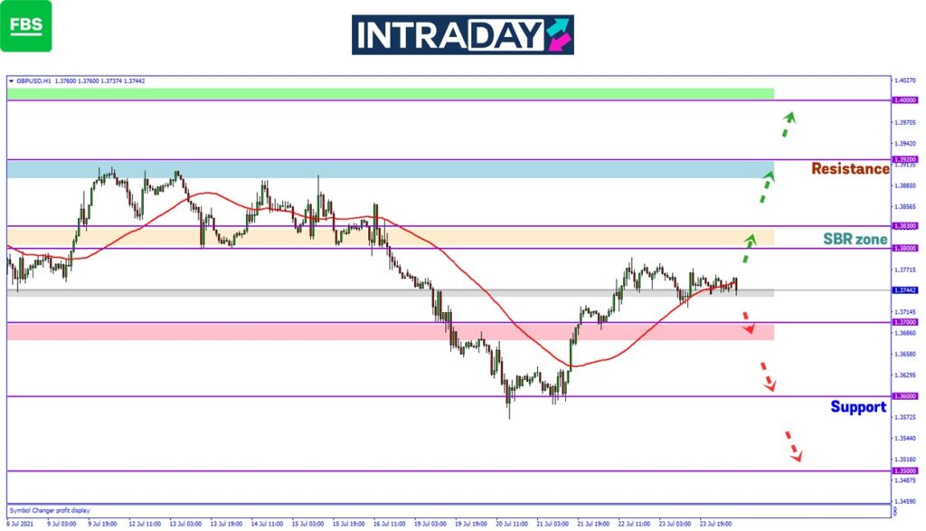 Jika penurunan harga berlaku pada carta GBP/USD, paras sokongan awal pada 1.37000 akan diuji terlebih dahulu sebelum penurunan yang diteruskan akan kembali ke paras sokongan minggu lalu sekitar 1.36000.