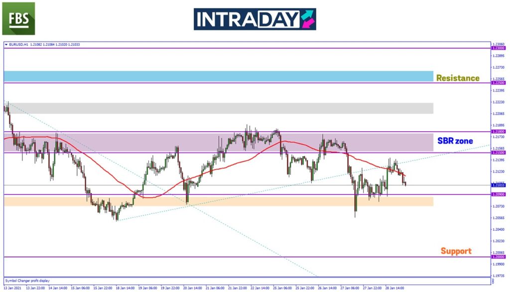 Penurunan harga akan kembali menguji paras sokongan 1.20900 sebelum harga yang susut lebih rendah akan menuju semula ke zon support tumpuan 1.20000.