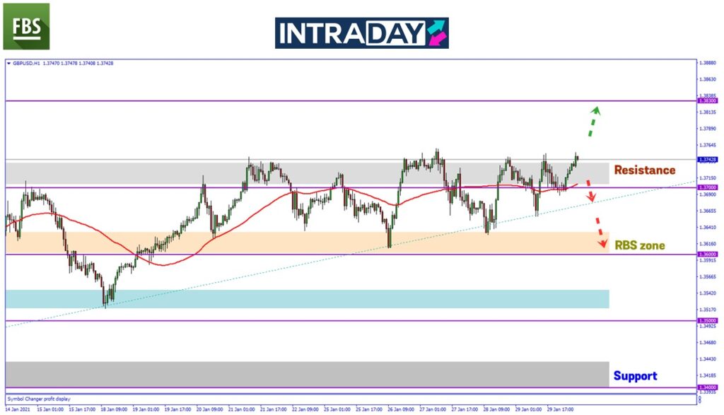 Namun jika harga bergerak turun semula dari zon resistance 1.37000, penurunan harga dilihat akan menguji zon RBS (resistance become support) pada 1.36000.