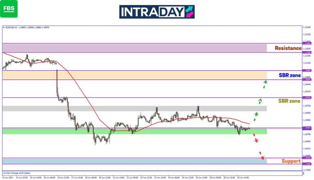 Dengan corak pergerakan yang perlahan, penurunan harga akan dijangkakan akan menguji paras sokongan minggu lalu sekitar 1.18500 sebelum meneruskan penurunan lebih rendah ke zon support 1.18000.