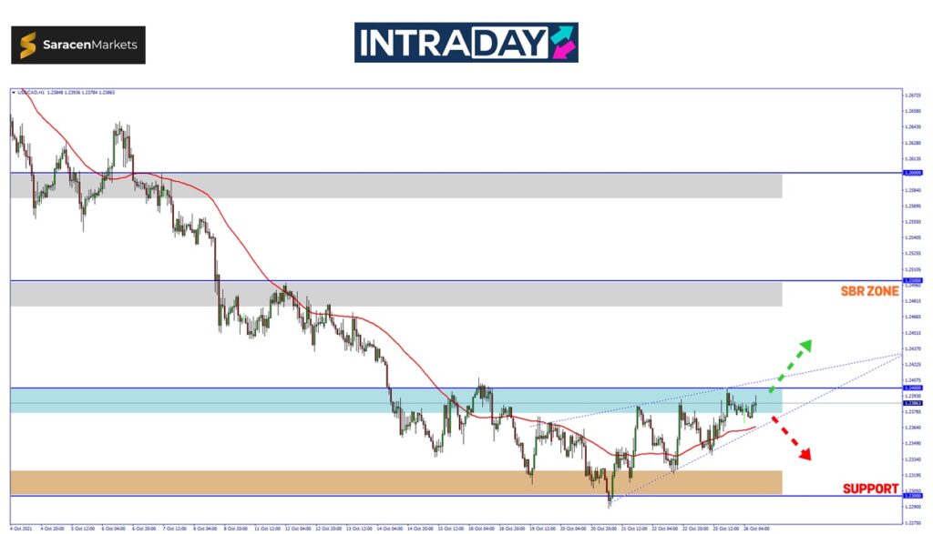 Peningkatan yang dipertonjolkan turut telah mencatat kenaikan sehingga menguji zon SBR (support become resistance) 1.24000 dan memberi bayangan seperti sedang membuat corak ‘rising wedge’.