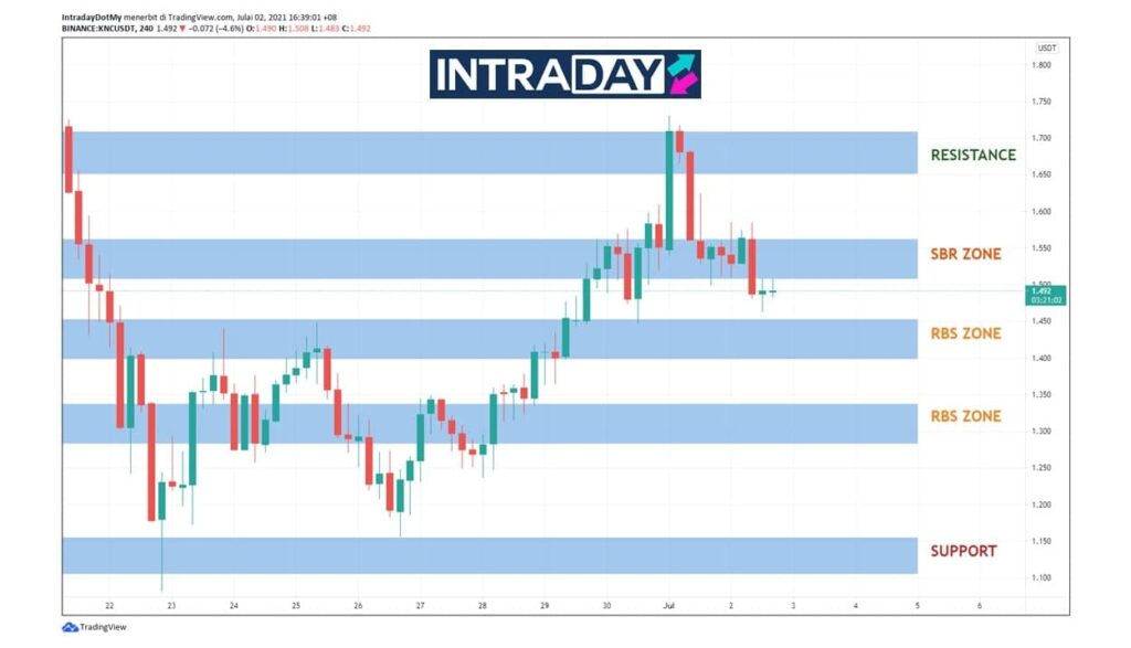 Selanjutnya, melihat kepada carta pergerakan semasa harga KNC/USDT,