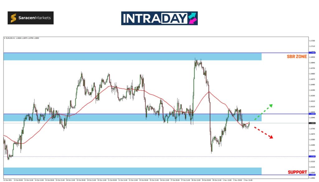 Pelabur mungkin akan melihat dan menilai paras terendah 2021 yang dicatatkan pada dagangan Oktober sekitar 1.15300 sekiranya pergerakan harga kekal memaparkan trend penurunan.