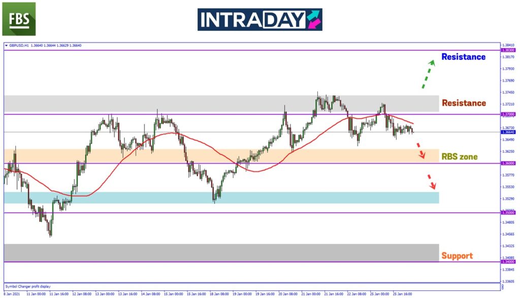 Harga yang meneruskan penurunan akan menuju zon RBS (resistance become support) pada 1.36000 yang dilihat akan menyokong kenaikan harga semula.