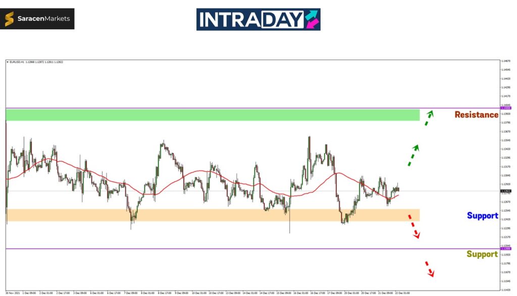 Sebaliknya jika harga tembus zon tersebut, penurunan lebih rendah dijangka akan kembali semula ke zon support utama pada 1.12000 yang menjadi zon terendah harga untuk tahun 2021.