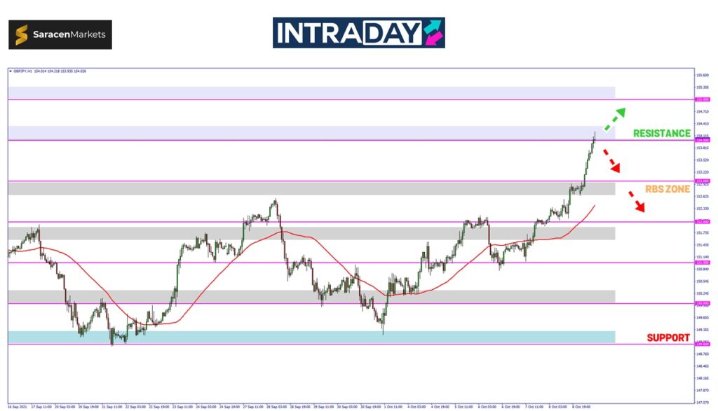Penurunan harga yang lebih rendah dijangka menuju ke zon RBS selanjutnya pada 152.000 dan akan memberi isyarat kepada pelabur untuk pergerakan harga GBP/JPY membuat perubahan trend.