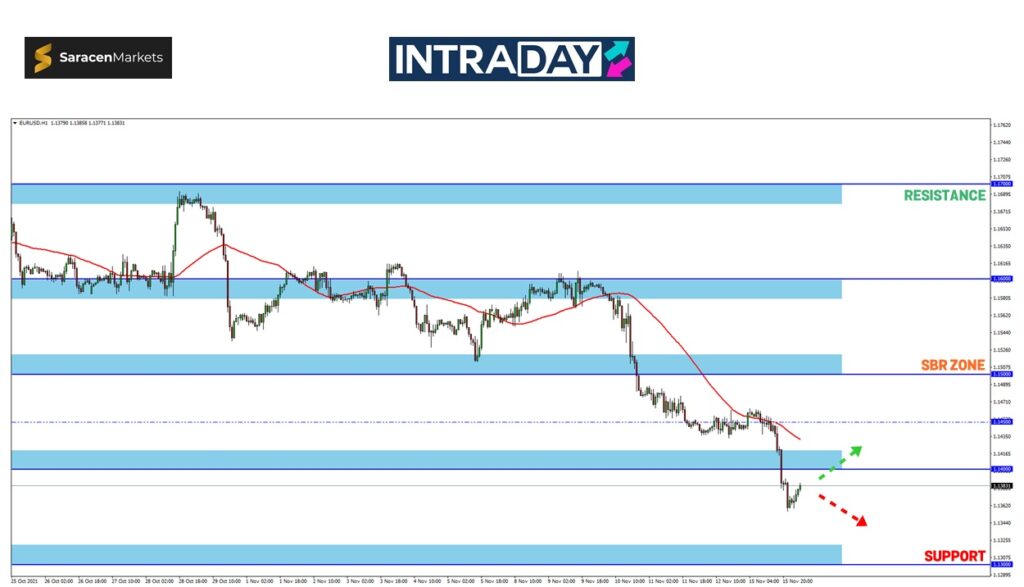 Manakala sekiranya pergerakan harga pada carta EUR/USD kembali mencatat lonjakan, zon sasaran sebelum ini iaitu yang kini telah menjadi zon SBR pada 1.14000 berkemungkinan akan dicapai semula.