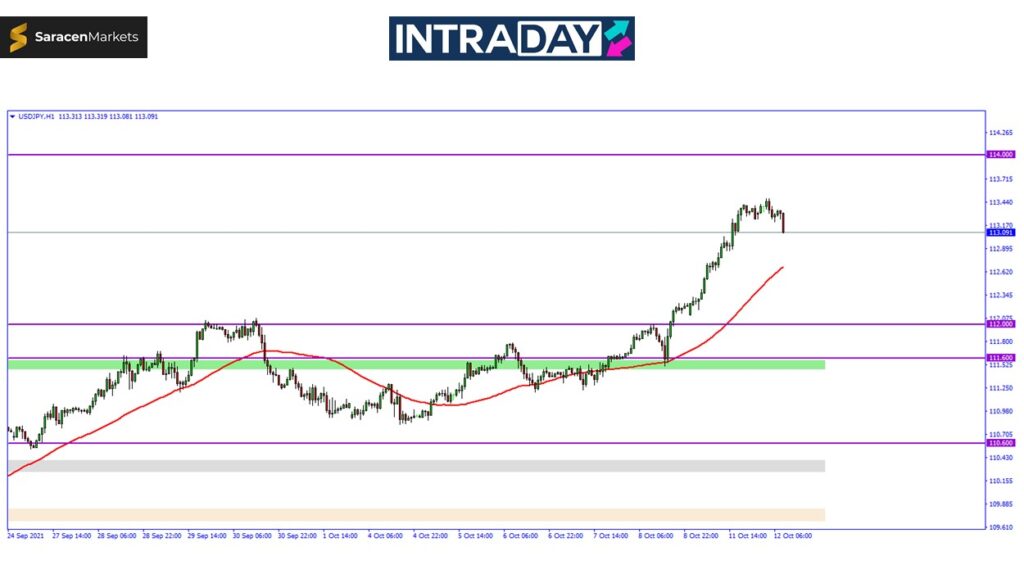 Pada carta harga pasangan mata wang USD/JPY, harga dilihat telah menyambung lonjakan pada pembukaan dagangan awal minggu ini selepas kenaikan pada penghujung minggu lalu berjaya melepasi paras rintangan 112.00.