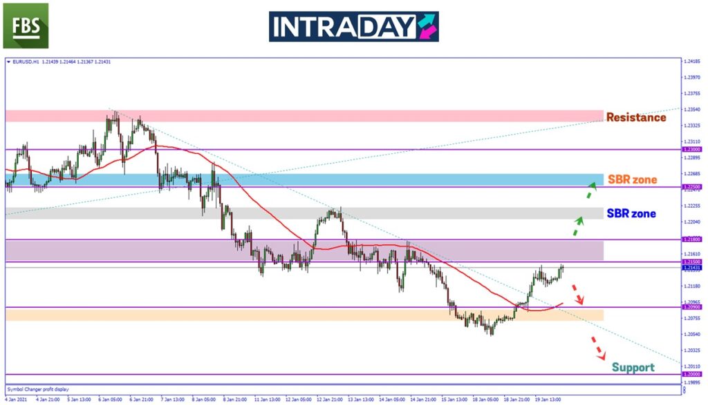 Harga pada carta EUR/USD pada Selasa telah menunjukkan tanda-tanda awal untuk perubahan trend bullish selepas harga membuat kenaikan lebih tinggi di atas paras 1.21000 dan juga melepasi paras halangan Moving Average 50 (MA50) pada rangka masa 1 jam pergerakan harga.