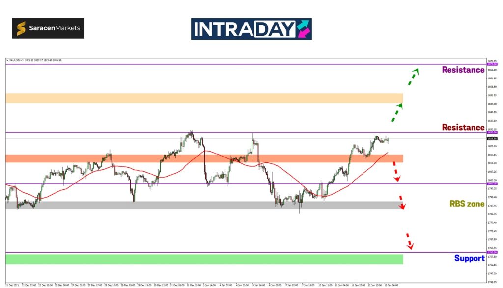 Penurunan lebih rendah harga emas akan menuju pula zon support pada 1785.00 atau lebih rendah lagi pada zon 1760.00.
