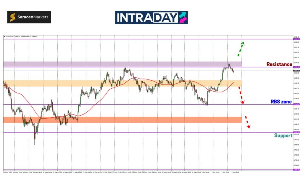Jika bacaan kekal lemah menyusuli laporan data ADP semalam dan mendorong penyusutan lanjut US dolar, harga emas boleh melonjak lebih tinggi melepasi semula zon 1870.00.