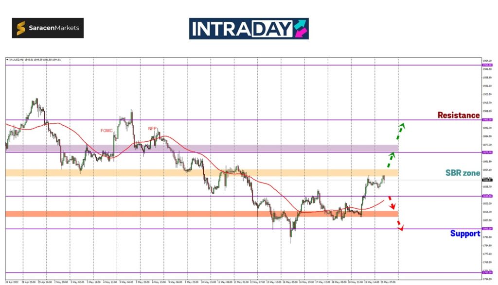 Kenaikan harga sehingga bersambung ke sesi New York telah mencapai ke zon SBR (support become resistance) 1850.00.