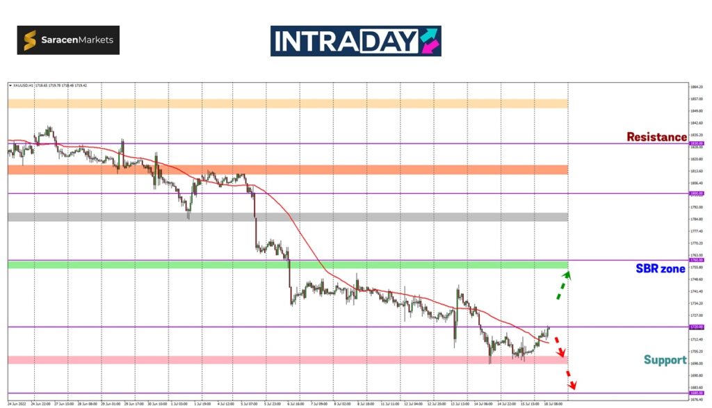 Sebaliknya jika harga kembali susut semula dari paras 1720.00, berkemungkinan trend bearish sebelum ini akan diteruskan dan harga bakal kembali semula ke zon support 1700.00.