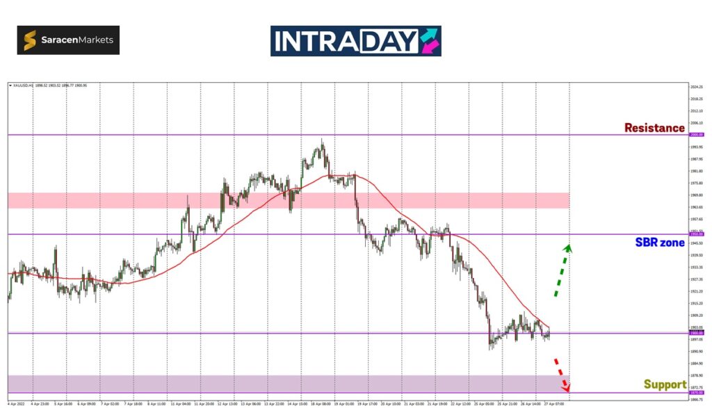 Walaupun pergerakan harga mendatar di paras 1900.00, penganalisis masih menilai pergerakan harga dalam trend bearish di mana harga masih bergerak di bawah paras halangan Moving Average 50 (MA50) pada rangka masa 1 jam.