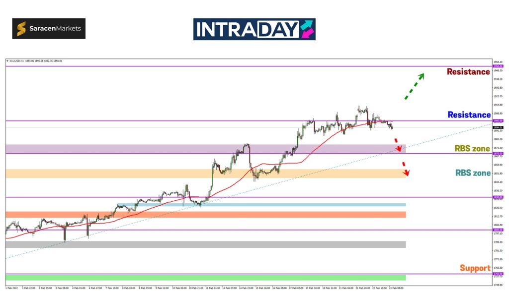 Sebaliknya jika krisis Rusia-Ukraine semakin hangat dan tarikan terhadap emas terus meningkat, maka harga emas akan terus dipacu tinggi di atas paras 1900.00.