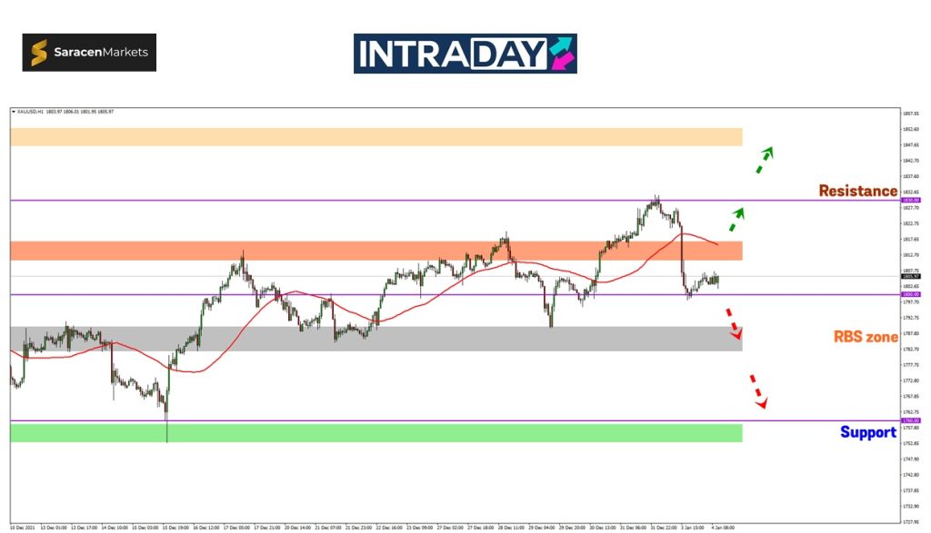 Paras 1800.00 menjadi zon penting yang akan memberi isyarat arah pergerakan harga seterusnya, namun penganalisis cenderung melihat harga emas bakal meneruskan penyusutan lebih rendah.
