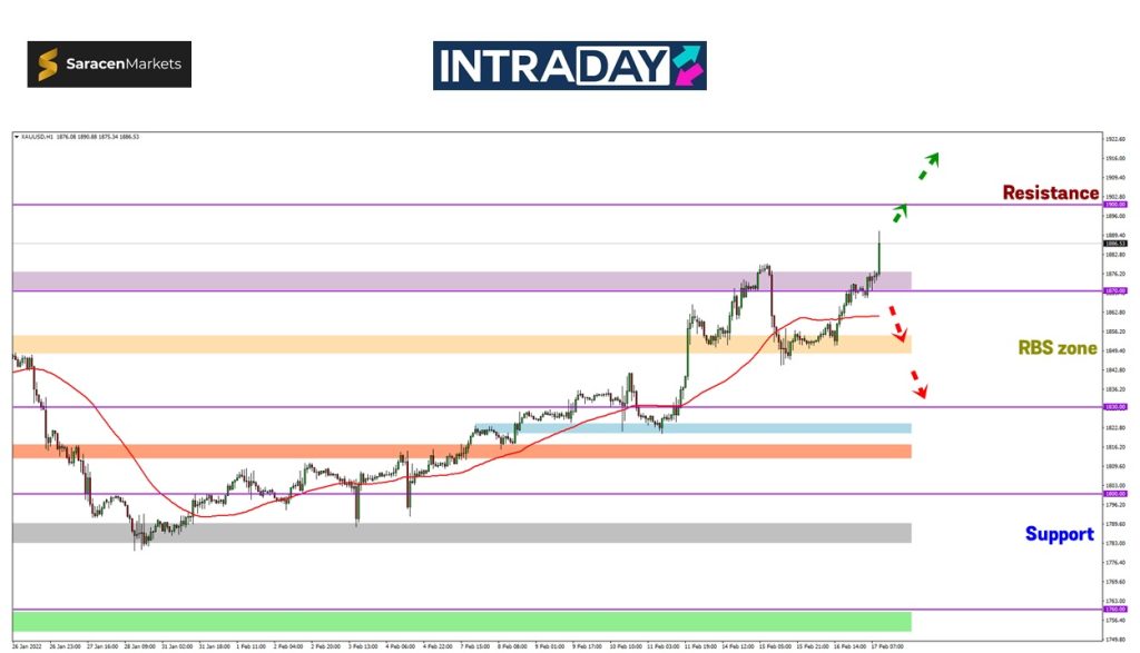 Kenaikan lebih tinggi akan dijangkakan untuk menuju ke paras sasaran 1900.00 yang menjadi zon penting diuji harga pada dagangan Mei dan Jun tahun lalu.