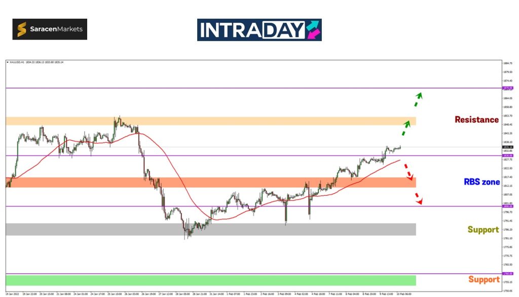 Jangkaan kenaikan harga emas bakal menuju zon rintangan pada 1850.00 yang diuji pada dagangan penghujung Januari lalu sebelum membuat terjunan harga selepasnya.