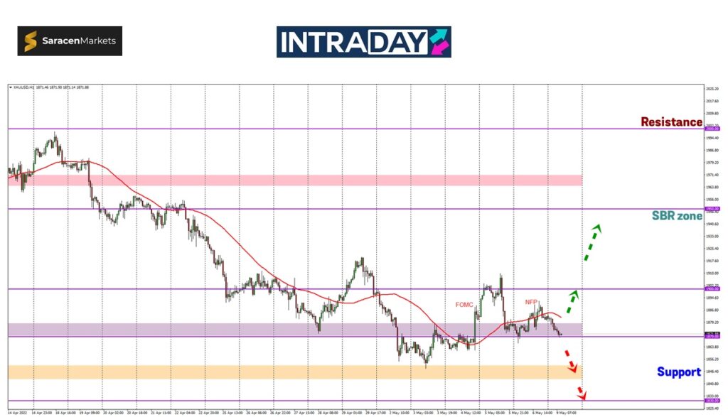 Namun harga gagal meneruskan kenaikan dan menjunam semula sehingga ke zon tumpuan 1870.00 menjelang laporan pekerjaan NFP Amerika Syarikat (AS).