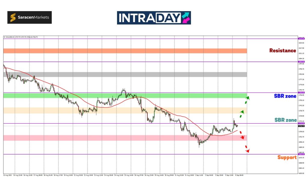 Untuk jangkaan pergerakan harga seterusnya, sekiranya harga berjaya memaparkan corak kenaikan, dijangkakan harga bakal meningkat sehingga ke zon sekitar 1740.00 yang akan menjadi rintangan awal buat harga selepas isyarat pergerakan bullish yang lebih jelas.