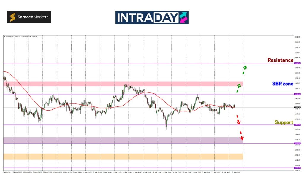 Jika zon support tersebut yang berjaya menyokong harga untuk beberapa minggu sebelum ini berjaya ditembusi, harga bakal catatkan paras terendah terbaru menuju sekitar 1870.00.