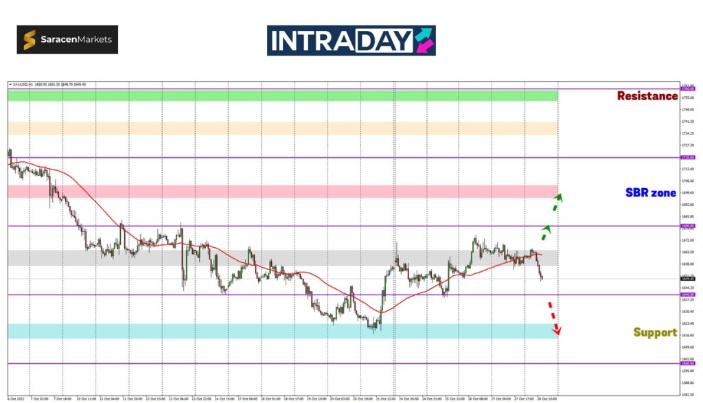 Setakat jam 5 petang waktu tempatan, harga emas telah susut ke sekitar paras 1650.00 dengan sasaran pada paras 1640.00 yang bakal menjadi tumpuan untuk diuji semula.