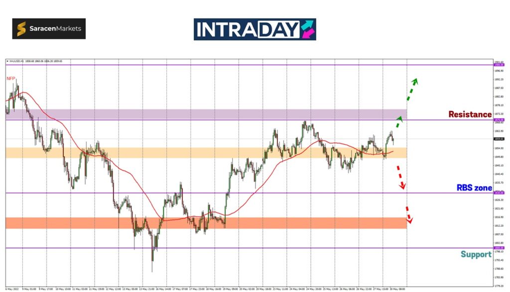 Memulakan dagangan pada sesi Asia hari ini, harga paparkan kenaikan semula dan dilihat zon rintangan pada 1870.00 akan kembali menjadi sasaran untuk diuji harga.