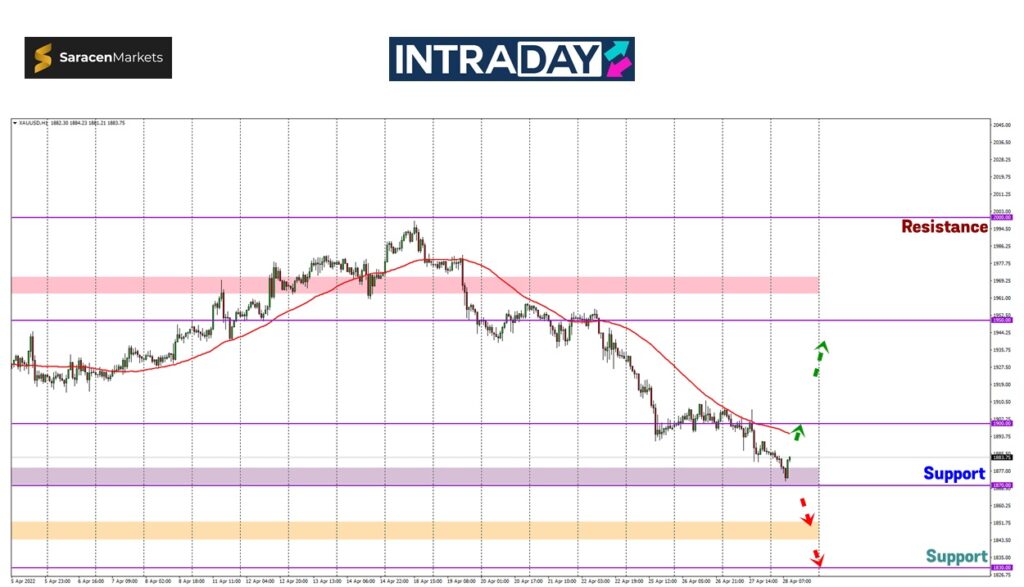 Penurunan lebih rendah akan dijangkakan menuju sehingga ke paras sekitar 1830.00 pula sekiranya harga menyambung penurunan di bawah zon 1870.00.
