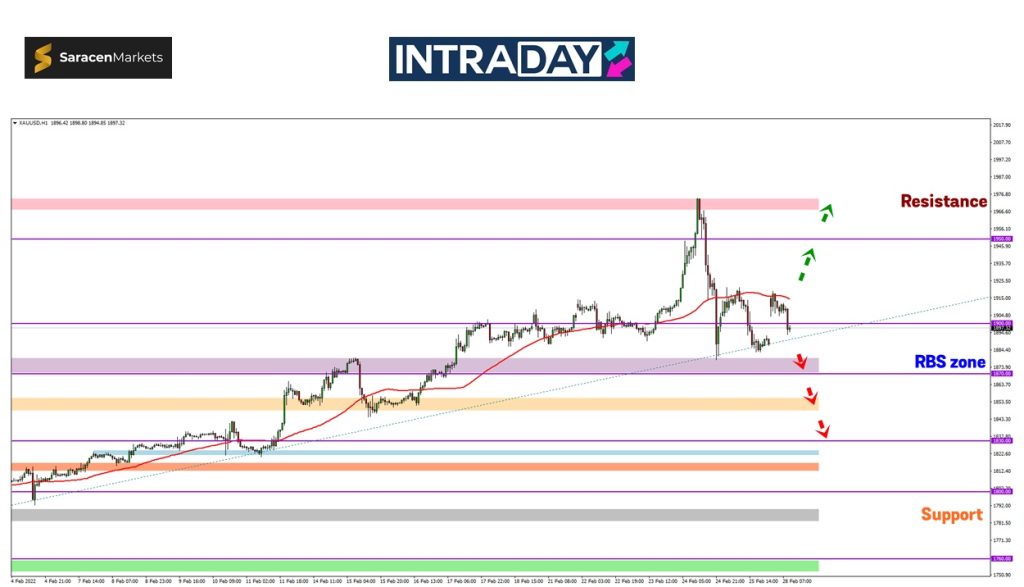 Jika penurunan lanjut harga berlaku, zon RBS (resistance become support) 1870.00 dilihat menjadi zon awal bakal diuji harga seperti penurunan yang berlaku minggu lalu.