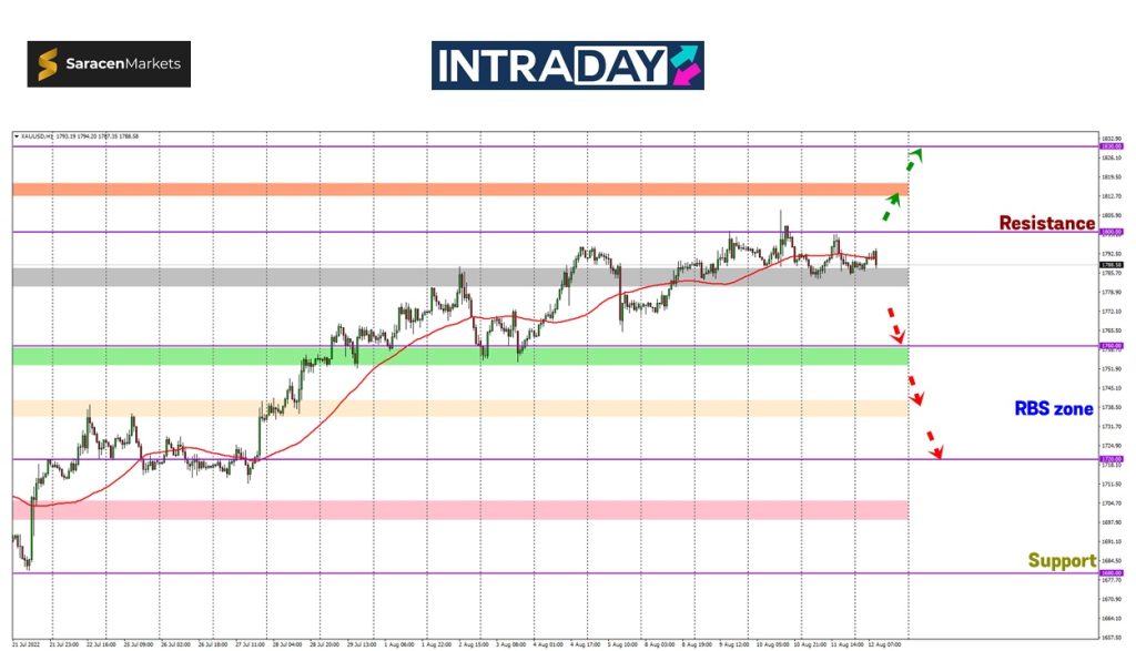 Sekiranya harga berjaya membuat peningkatan dan menembusi paras halangan 1800.00 di sesi-sesi terakhir ini, dijangkakan harga bakal meningkat sehingga ke zon rintangan 1815.00 untuk mencatatkan paras ketinggian terbaru 6 minggu.