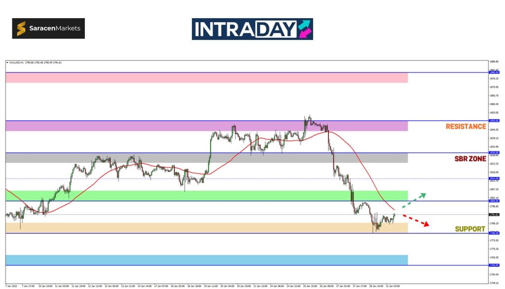Walau bagaimanapun, zon sokongan 1780.00 berkenaan turut merupakan zon tumpuan berikutan ia sudah beberapa kali menyokong semula lonjakan harga sejak pertengahan dagangan Disember 2021.