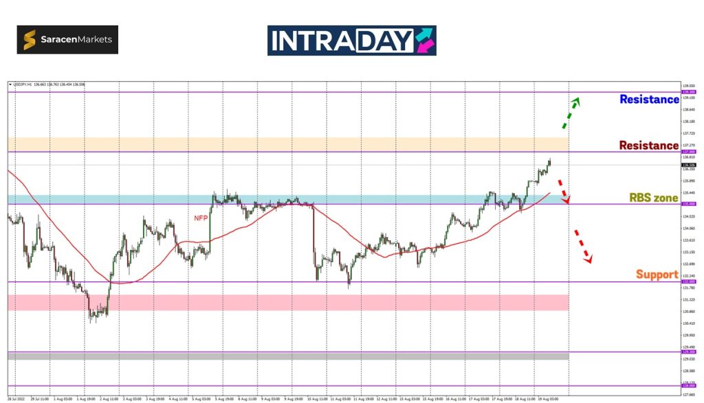 Penurunan harga dilihat akan kembali ke paras 135.00 semula untuk menguji zon RBS (resistance become support) tersebut untuk jangkaan zon tersebut bakal menyokong kembali kenaikan harga.