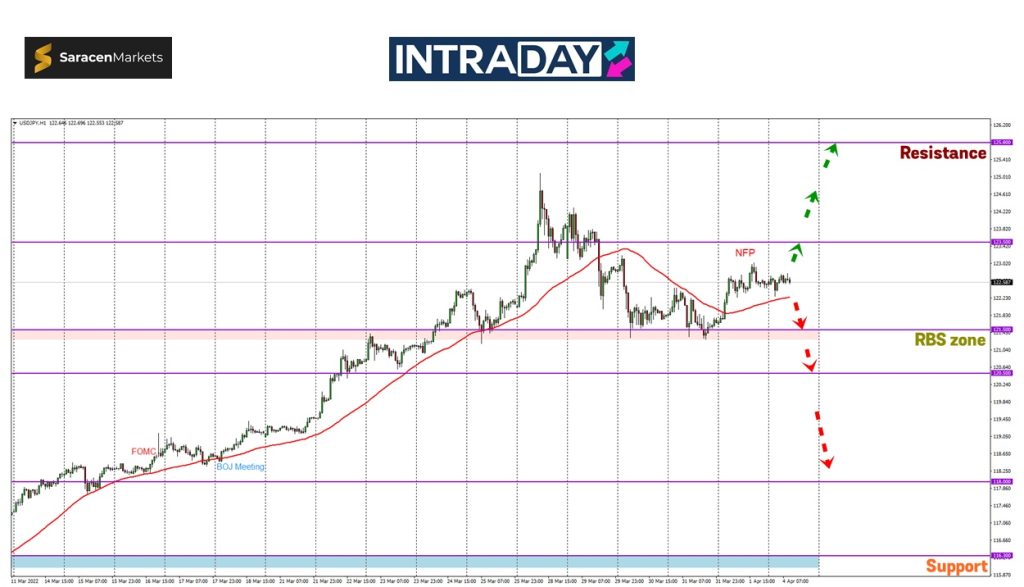Susulan terbitan laporan pekerjaan NFP pada Jumaat, harga sedikit meningkat ke paras ketinggian 123.00 sebelum berlegar di bawah paras tersebut sehingga dagangan bersambung di awal pembukaan pasaran minggu ini.
