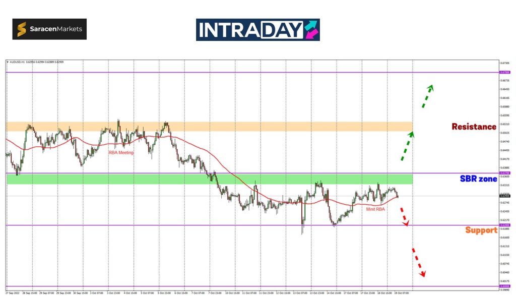 Sekiranya kenaikan harga diteruskan hari ini, rintangan pada zon SBR (support become resistance) 0.63500 bakal diuji untuk ditembusi.