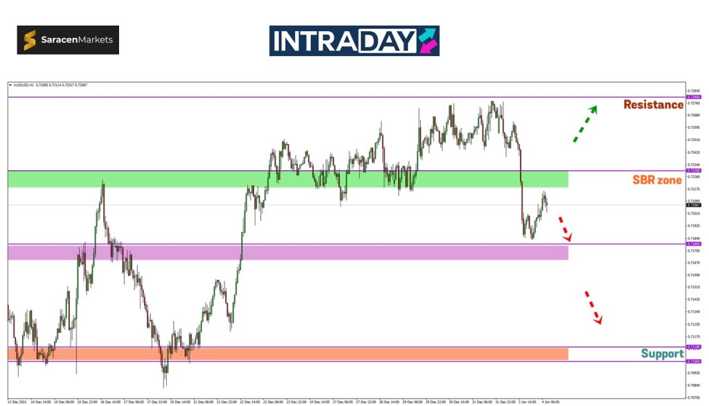 Namun, jika kenaikan harga berjaya tembusi zon 0.72300, maka pelabur akan kembali menjangkakan zon resistance pada 0.72800 akan diuji semula selepas gagal berbuat demikian pada penghujung 2021.