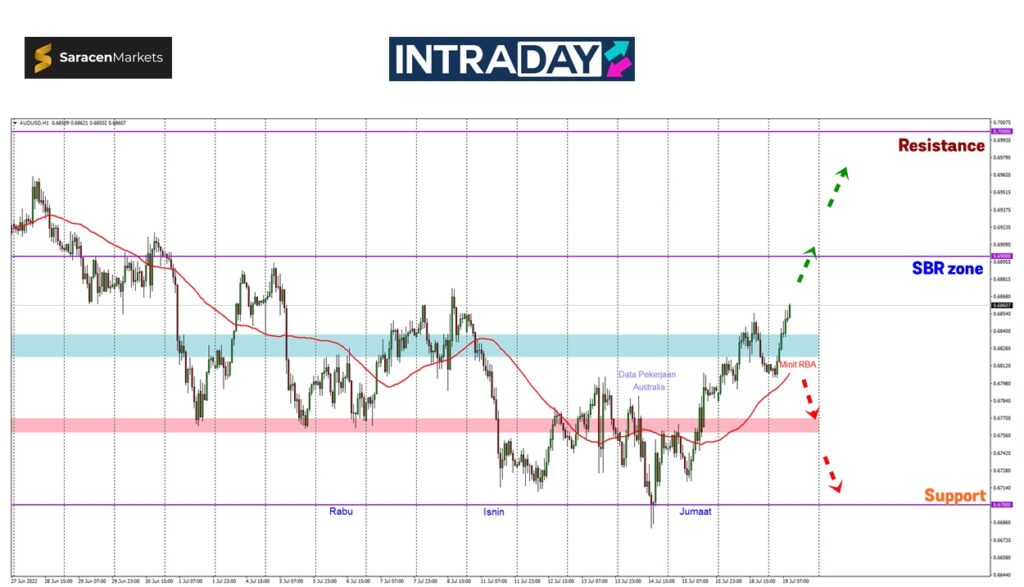 Setelah menutup dagangan sekitar 0.68100 dan bergerak perlahan di sekitar tersebut bersambung pada pembukaan sesi Asia pagi ini, harga kemudiannya telah melonjak selepas reaksi terhadap laporan minit RBA yang diterbitkan.