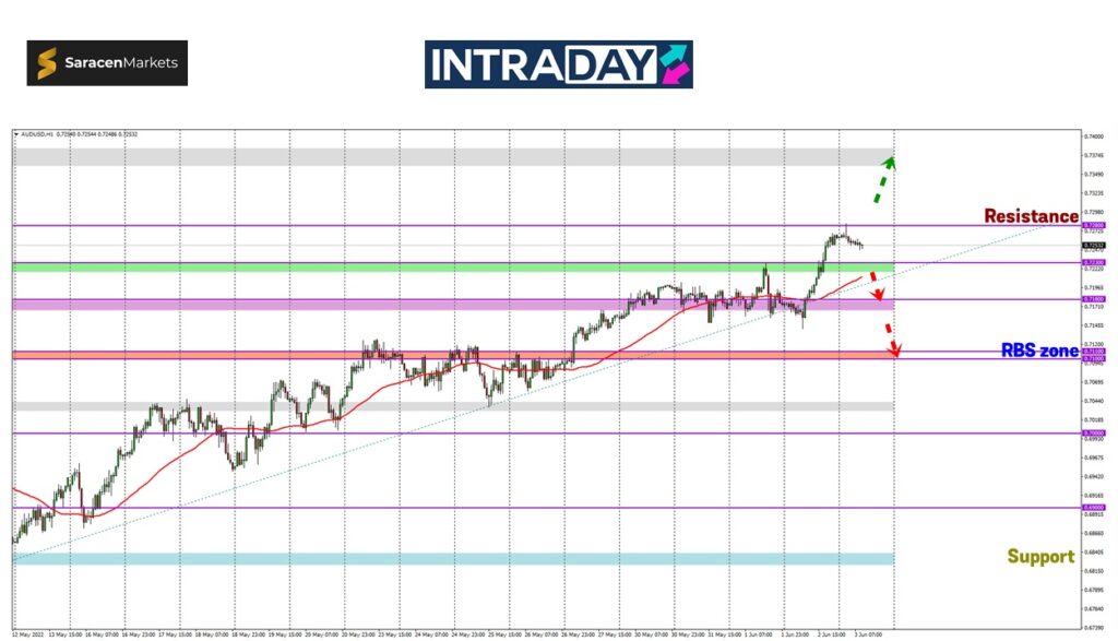 Namun, sekiranya penurunan harga kembali terjadi, zon 0.72300 akan diuji dan jika zon tersebut berjaya menyokong kenaikan semula, harga akan menyambung corak bullish.