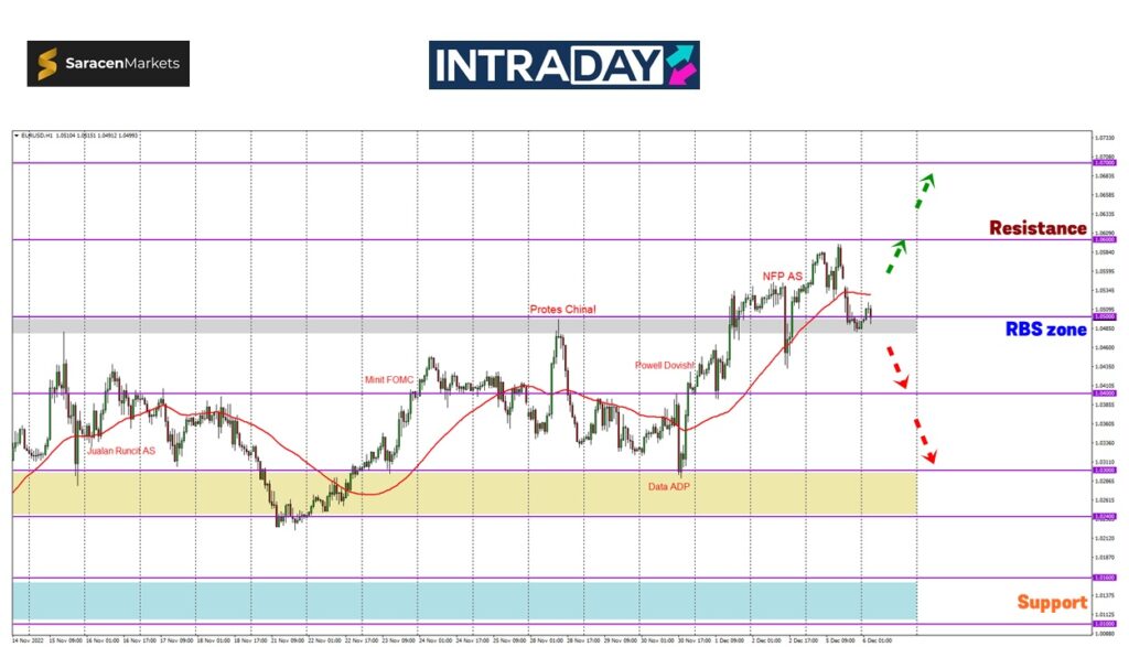 Sekiranya penurunan dilanjutkan, harga dilihat akan menuju ke paras 1.04000 untuk menguji paras tumpuan minggu lalu.