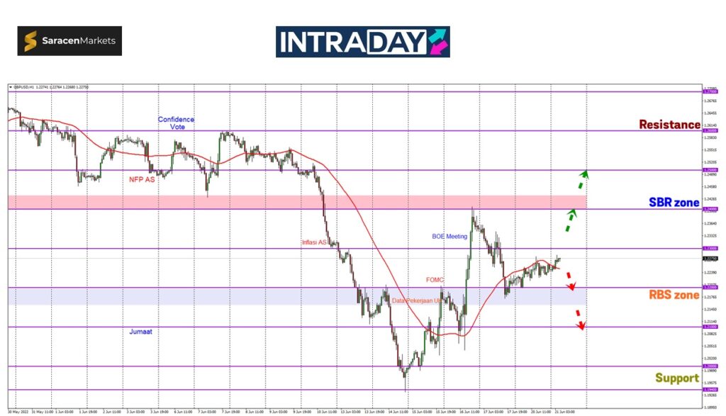 Penurunan harga yang bergerak susut di bawah zon 1.22000 akan menjangkakan harga menuju ke paras sekitar 1.210000 dahulu sebelum kembali mencecah pada zon support 1.20000 untuk pergerakan bearish yang lebih jelas.