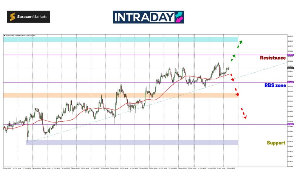 Sekiranya kenaikan harga masih berjaya dikekalkan, sasaran lebih tinggi untuk dituju adalah pada 0.59300 selepas mengatasi ketinggian dicapai semalam.