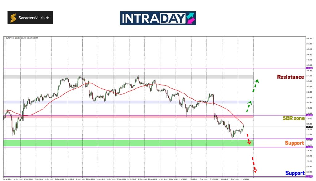 Sekiranya harga meneruskan penurunan melepasi support tersebut, harga boleh mencecah sehingga jangkaan sekitar 134.00 untuk catatkan paras terendah terbaru 7 minggu.