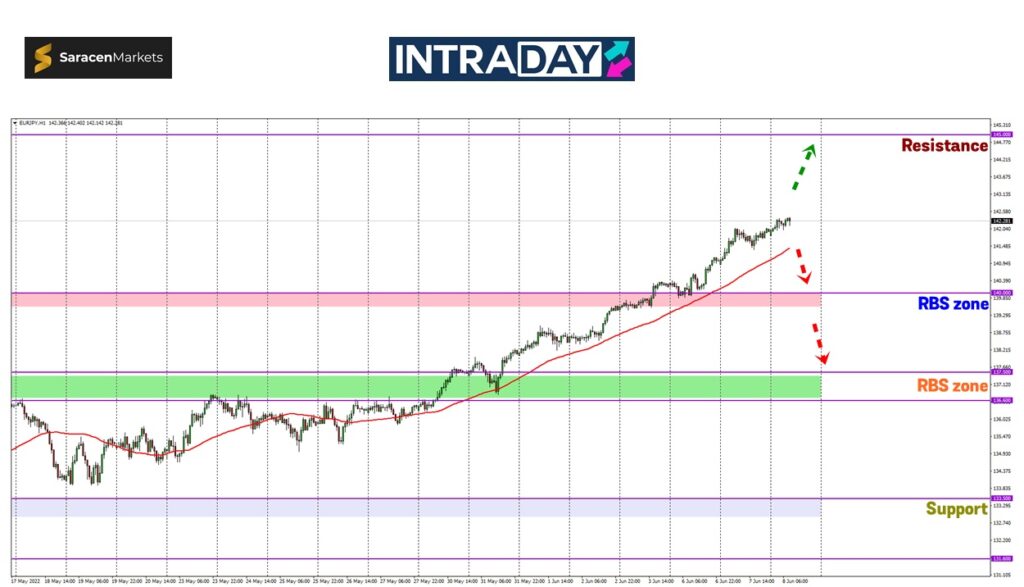 Justeru, jika diperhatikan pergerakan harga pada carta EUR/JPY, selepas mendatar di zon 136.500 pada penghujung Mei lalu, harga mula paparkan prestasi memberangsangkan dengan memacu ke paras lebih tinggi sejak minggu lalu.