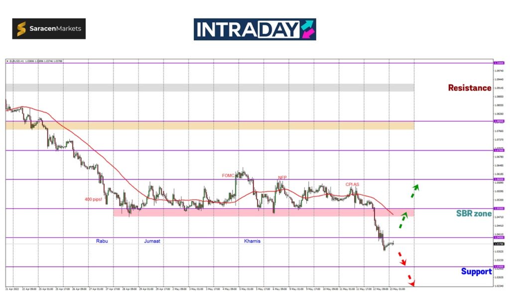 Sekiranya kenaikan harga berlaku pula, rintangan dilihat pada zon 1.0500 iaitu zon SBR (support become resistance) terbaru bakal diuji.