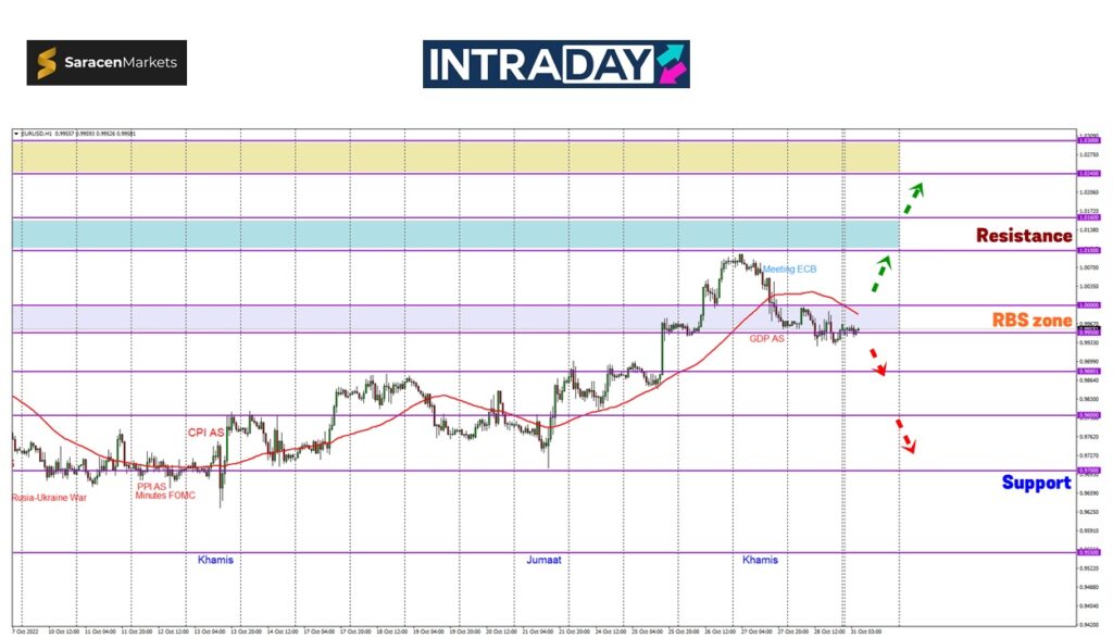 Sementara, jika berlaku lonjakan semula harga melepasi halangan MA50 dan juga paras pariti 1.0000, pelabur akan menilai sebagai isyarat untuk harga menyambung semula pergerakan trend bullish minggu sebelum ini.