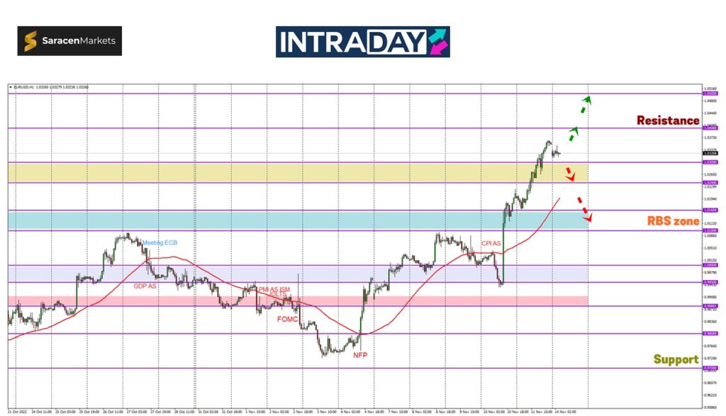 Sementara, untuk jangkaan bagi penurunan harga yang boleh berlaku, susut di bawah paras 1.03000 akan mendorong harga menuju semula sehingga 1.01000 untuk menguji zon RBS (resistance become support) tersebut.
