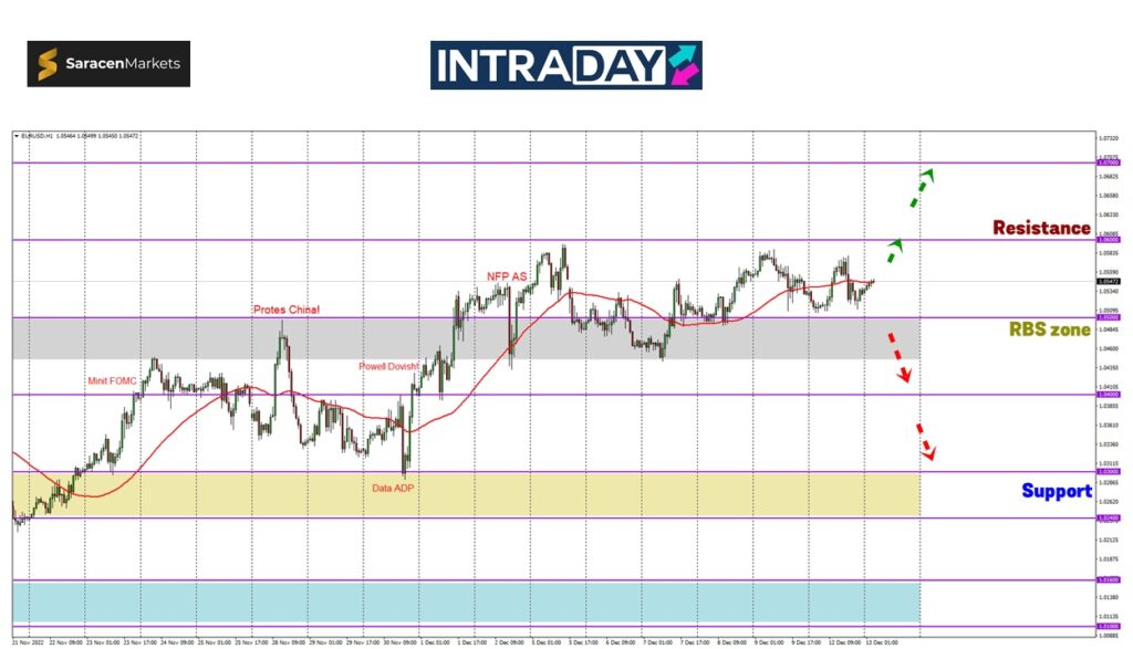 Namun jika penurunan pula yang berlaku, paras sokongan pada 1.05000 dahulu akan diuji sebelum memberikan isyarat untuk pergerakan trend bearish.