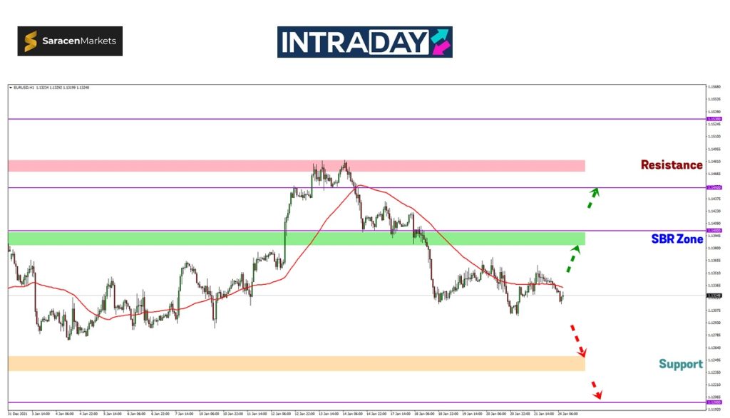 Penurunan lebih rendah akan menuju zon support pada 1.12000 yang menjadi zon terendah harga pada dagangan tahun 2021.