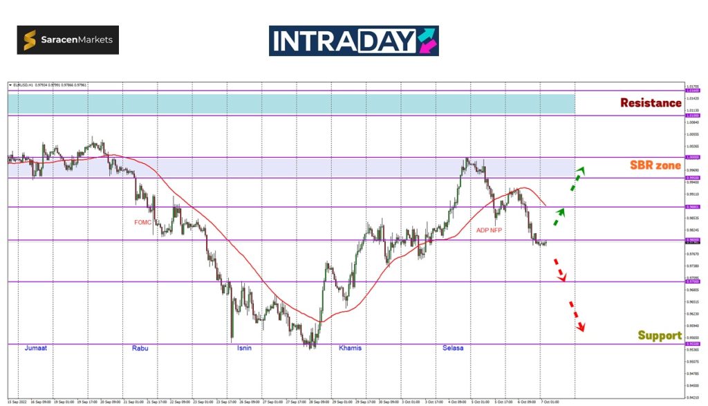 Sebaliknya, jika harga berjaya melonjak dari zon semasa 0.98000, menjadi sokongan terbaru untuk melantunkan semula harga, paras tumpuan sekitar 0.99000 bakal dicapai semula sebelum isyarat perubahan trend akan dinilai.