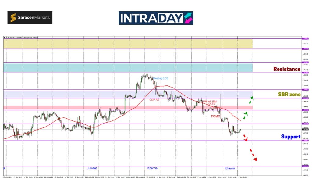 Sebaliknya, jika berlaku lantunan semula harga melepasi rintangan 0.98000 dan halangan MA50, kenaikan lebih tinggi boleh dijangkakan menuju zon 0.99000 semula dengan isyarat perubahan trend akan dinilai pelabur.